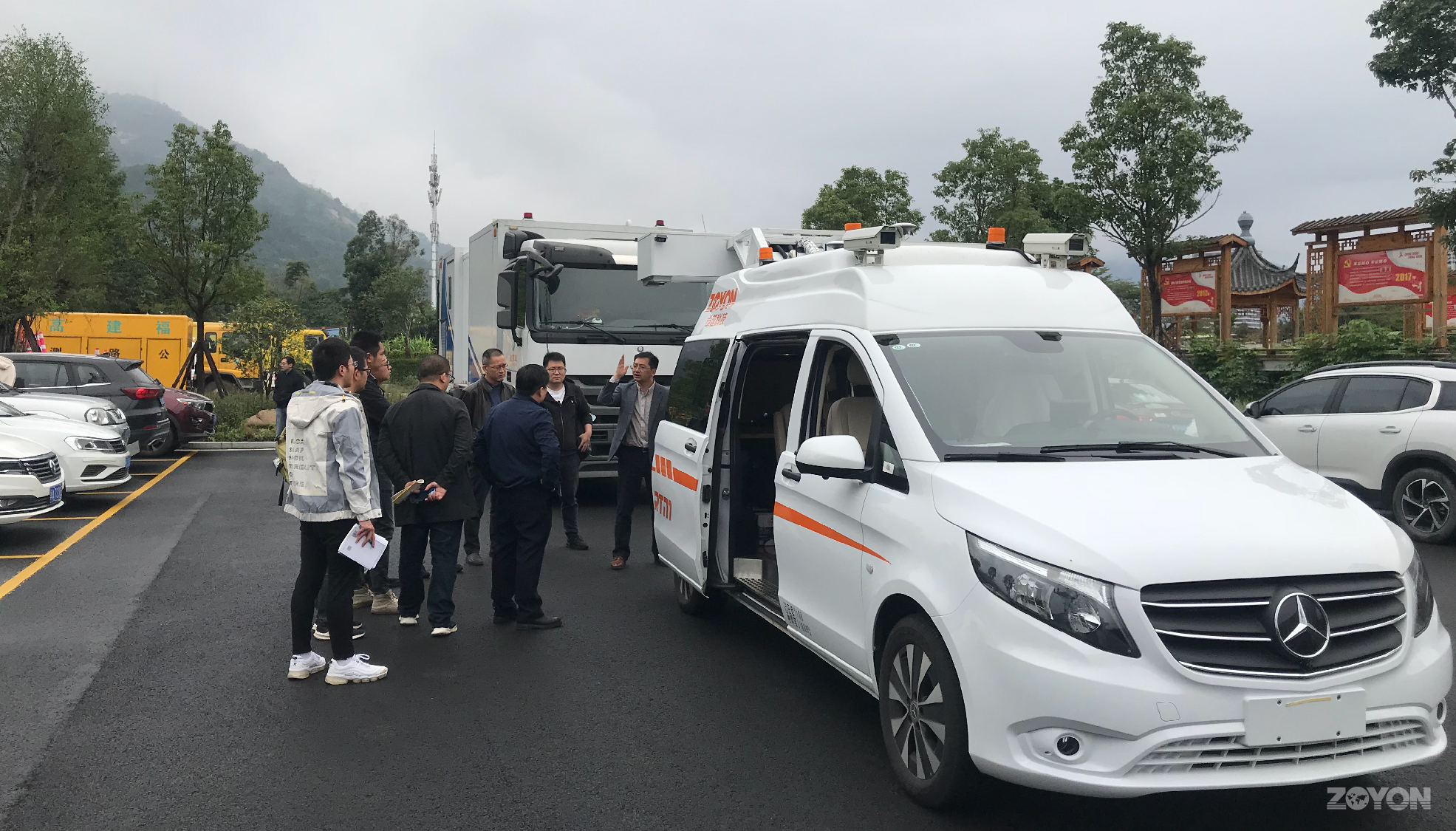 卓越科技盧總在現(xiàn)場(chǎng)對(duì)ZOYON-RTM-3D多功能路況快速檢測(cè)系統(tǒng)進(jìn)行了詳細(xì)介紹。參會(huì)領(lǐng)導(dǎo)全程在線觀看了ZOYON-RTM-3D檢測(cè)系統(tǒng)的外業(yè)檢測(cè)演示,充分展示了三維多功能路況快速檢測(cè)系統(tǒng)的功能和應(yīng)用。此次報(bào)告會(huì)及演示產(chǎn)品得到了現(xiàn)場(chǎng)領(lǐng)導(dǎo)的高度認(rèn)可。